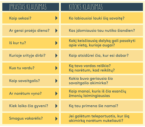 Koks pirmas žingsnis? Venkite klausimų, į kuriuos galima atsakyti „taip“ arba „ne“, o vietoj įprasto pasiteiravimo pabandykite klausti kitaip.